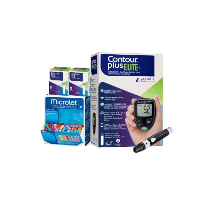 CONTOUR®PLUS ELITE 血糖測試機套裝 ( CONTOUR®PLUS ELITE 血糖儀1部、採血針(200支裝)1盒、CONTOUR®PLUS血糖試紙(50片裝)2盒)